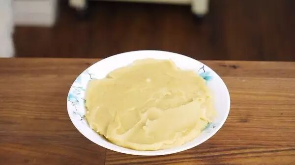 6、 收口后滚圆,在表面薄薄地沾上少许干粉,用手搓匀