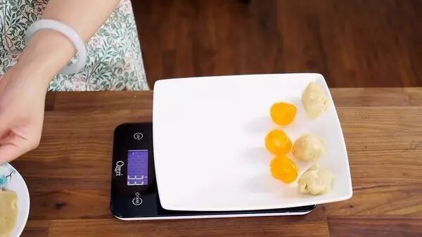 1、月饼要用模具,所以对材料重量的称量要尽量精致