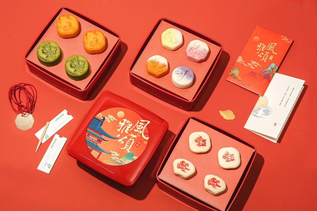 在历经两个月的艰难研制和结构设计的操作过程后,今年的月饼礼盒总算赶及和他们见面了。今年的月饼礼盒,他们沿袭了今年他们喜欢的“风雅颂”唐代后现代主轴,并升级了礼盒外型和月饼菜色。